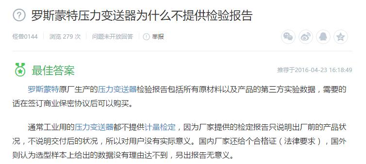 2、羅斯蒙特壓力變送器為什么不提供檢驗(yàn)報告?