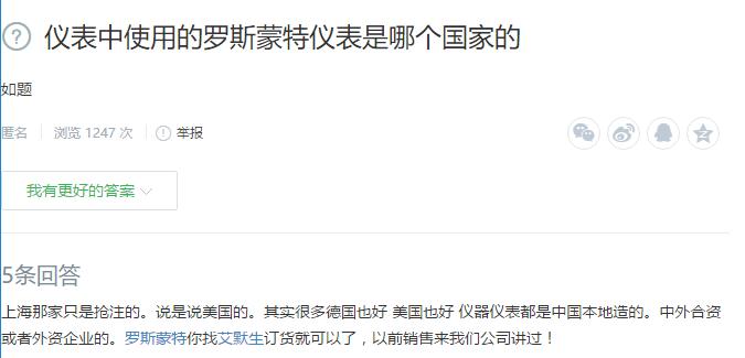 上海那家只是搶注的。說是說美國(guó)的。其實(shí)很多德國(guó)也好 美國(guó)也好 儀器儀表都是中國(guó)本地造的。中外合資或者外資企業(yè)的。羅斯蒙特你找艾默生訂貨就可以了,以前銷售來我們公司講過!如果還有疑問請(qǐng)?jiān)L問www.jyweiye.cn
