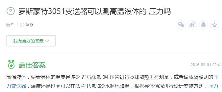 1、羅斯蒙特3051變送器可以測(cè)高溫液體的 壓力嗎?