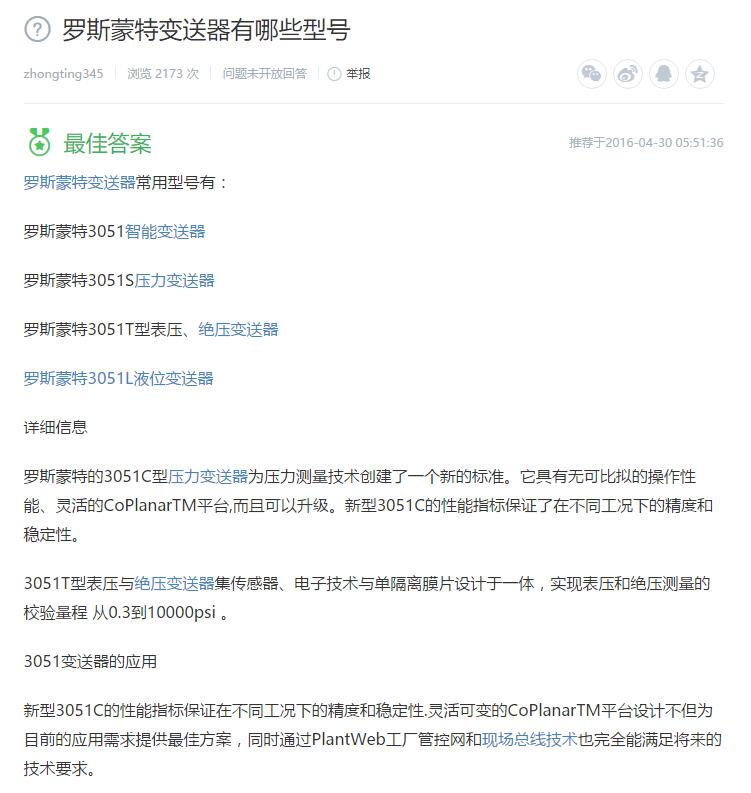 • 羅斯蒙特壓力變送器產(chǎn)品主要有哪些種類[2017-12-21]