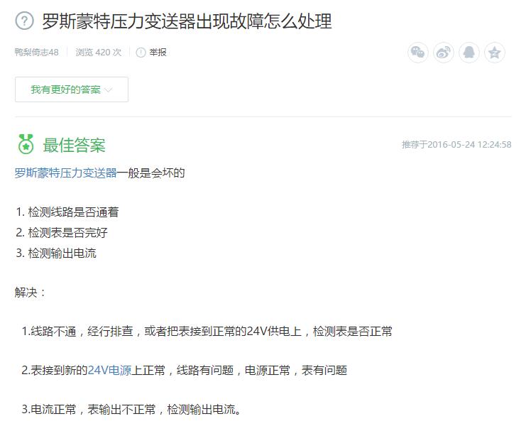 • 羅斯蒙特壓力變送器的六種常見故障處理[2017-12-21]