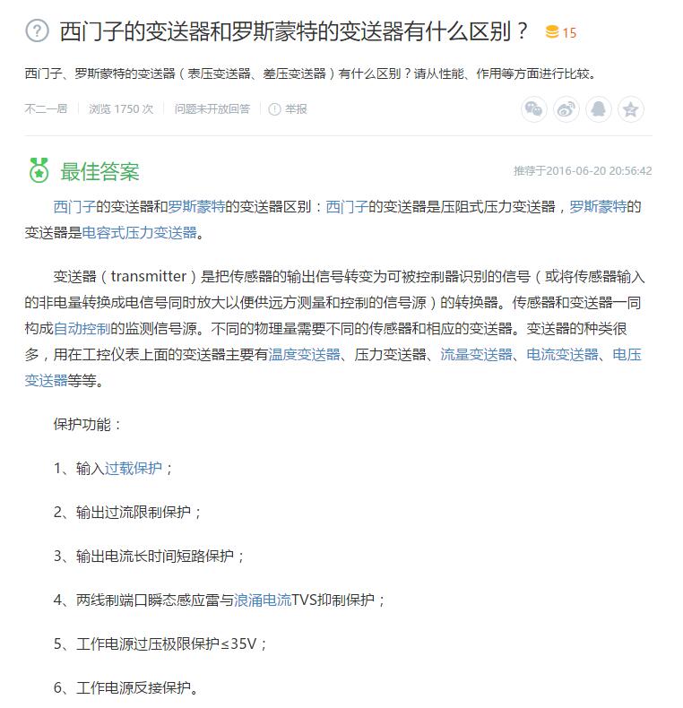 1、西門子的變送器和羅斯蒙特的變送器有什么區(qū)別?(西門子、羅斯蒙特的變送器(表壓變送器、差壓變送器)有什么區(qū)別?請從性能、作用等方面進行比較。)