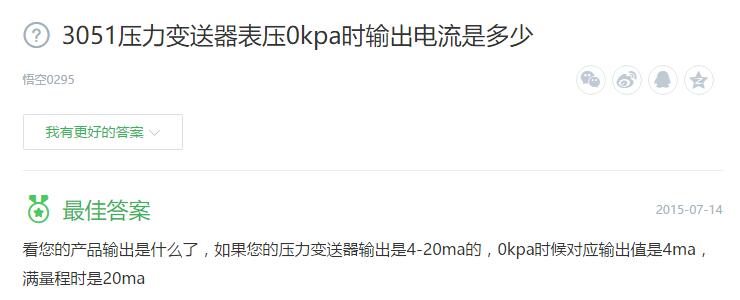 3、3051壓力變送器表壓0kpa時輸出電流是多少?