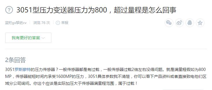 3051羅斯蒙特的壓力傳感器?一般傳感器都是有過載,一般傳感器過載2倍左右沒得問題。就是滿量程假如為800MP,傳感器能短時間內(nèi)承受1600MP的壓力,3051具體參數(shù)我不清楚,你可以看下產(chǎn)品資料或者直接致電他們區(qū)域分公司詢問。你這個應(yīng)該是實際加壓大于傳感器滿量程范圍,屬于過載!