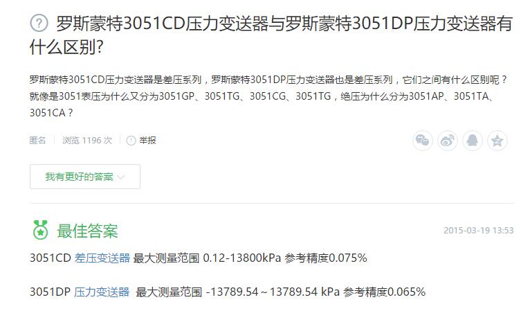 1、羅斯蒙特3051CD壓力變送器與羅斯蒙特3051DP壓力變送器有什么區(qū)別?(羅斯蒙特3051CD壓力變送器是差壓系列,羅斯蒙特3051DP壓力變送器也是差壓系列,它們之間有什么區(qū)別呢? 就像是3051表壓為什么又分為3051GP、3051TG、3051CG、3051TG,絕壓為什么分為3051AP、3051TA、3051CA?)