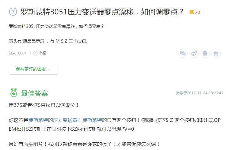 2、羅斯蒙特3051壓力變送器零點漂移,如何調(diào)零點?