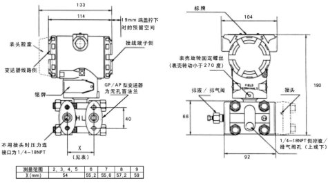 變送器任意一側加0~6.9MPa壓力不會引起損壞,在3.45kPa~6.9Mpa的靜壓范圍內工作時符合性能規(guī)格要求