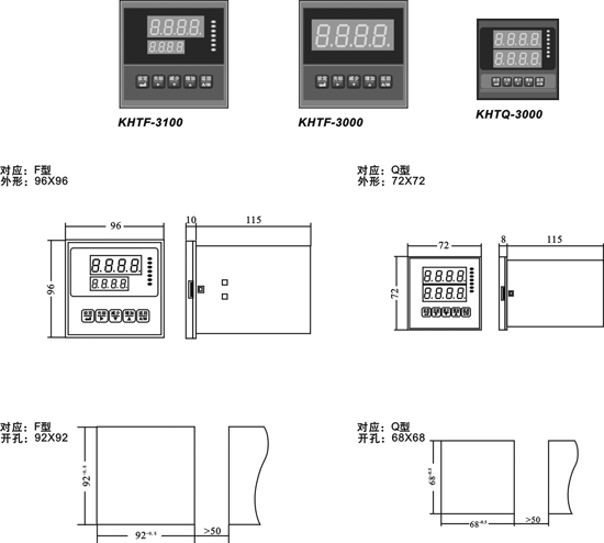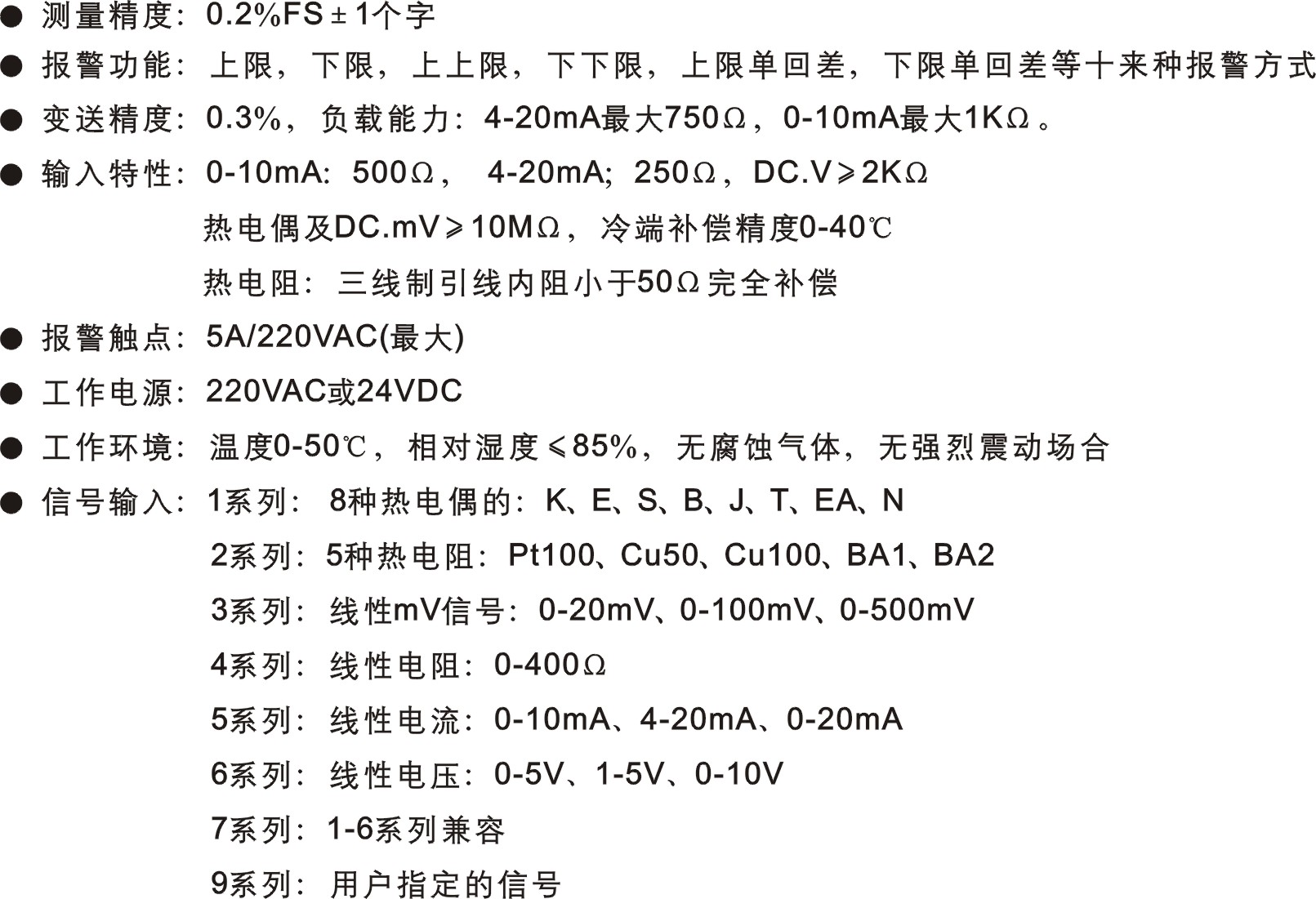 SLKT3000智能數(shù)字顯示報警儀SLKT3000智能數(shù)字顯示報警儀采用微處理進(jìn)行控制運算,最新隔離設(shè)計,可對各種非線性輸入信號進(jìn)行精度極高的線性矯正,可與各種傳感器配合,實現(xiàn)對溫度、壓力、液位、流量、速度等測量信號的顯示、報警、傳輸、控制等作用。儀表具有萬能信號輸入、斷線報警、超量程指示和自校準(zhǔn)、自診斷功能。配帶的串行通信輸出,可與各種帶串行輸入/輸出的設(shè)備進(jìn)行雙向通信,組成網(wǎng)絡(luò)控制系統(tǒng)。 技術(shù)參數(shù):結(jié)構(gòu)尺寸:
