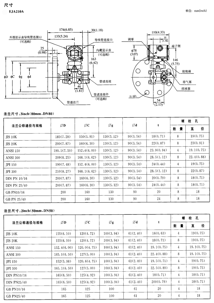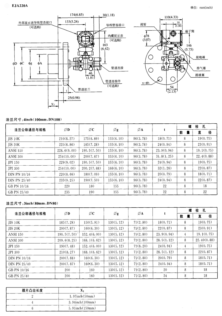 EJA210A/220A法蘭安裝式差壓變送器