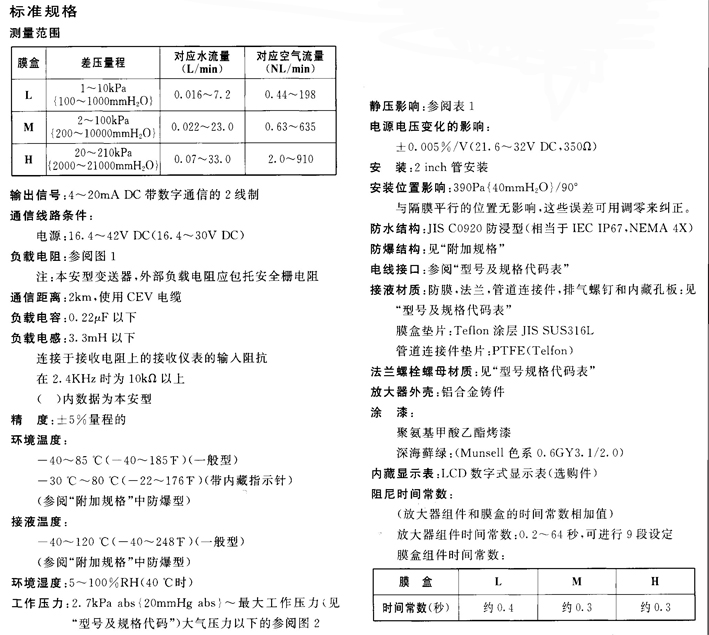 EJA115微小流量變送器內(nèi)藏孔板的差壓變送器,特別適合微小流量測量。輸出與所測流量對應的4~20mA DC的電流信號。內(nèi)藏孔板有六各種內(nèi)徑,范圍從0.508mm到6.350mm,選擇不同測量量程的差壓變送器和不同內(nèi)徑的內(nèi)藏孔,就可進行大范圍的微小流量測量。