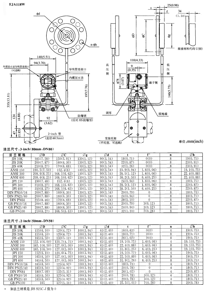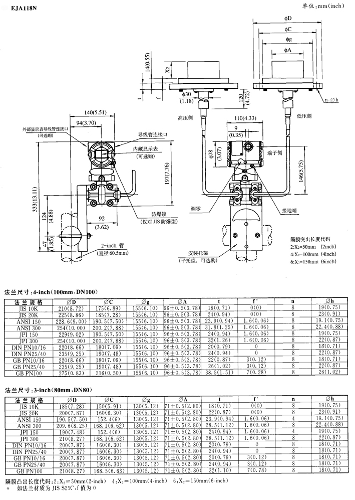 EJA118W、EJA118N、EJA118Y隔膜密封式差壓變送器